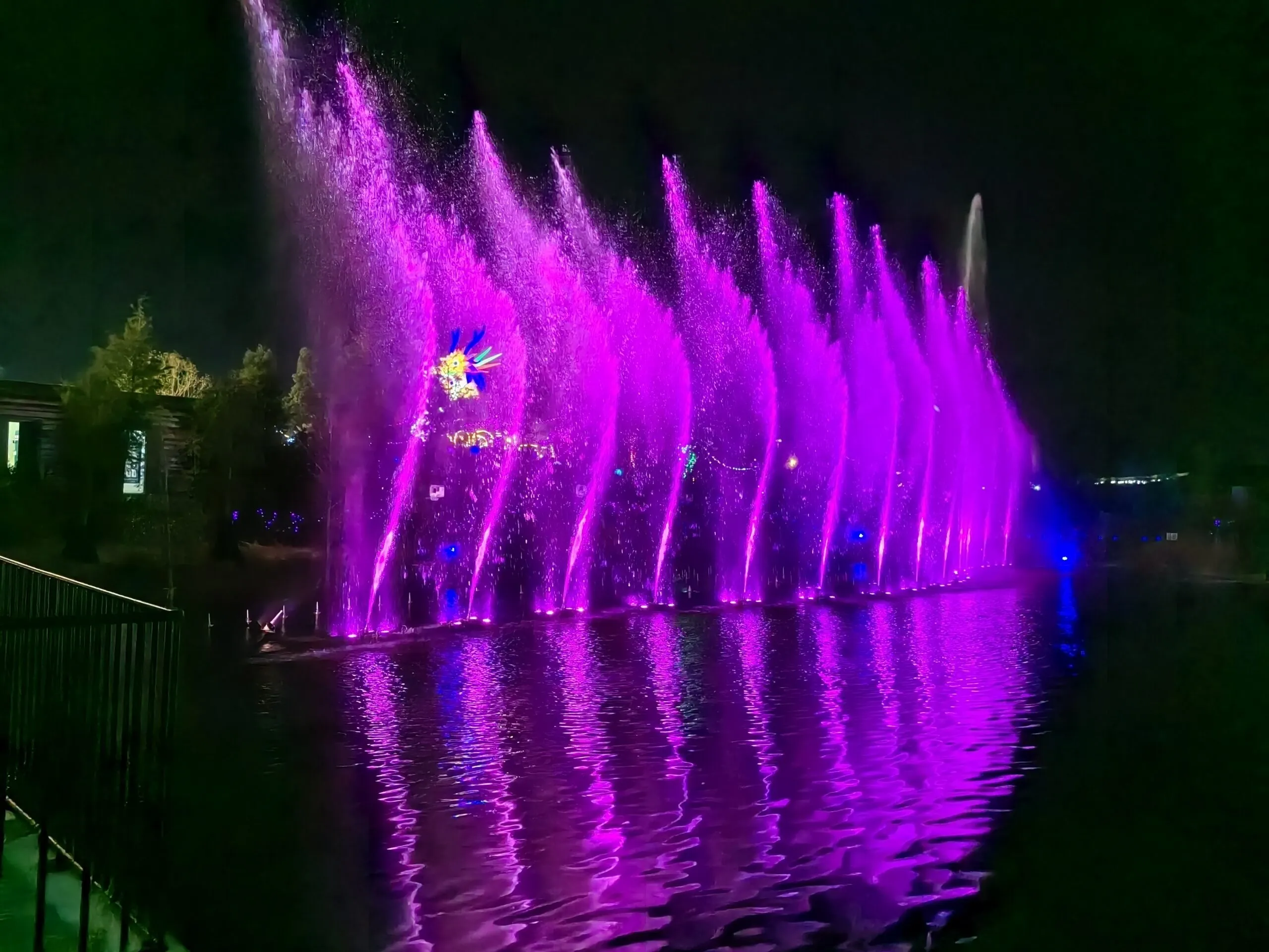 This music fountain is 46 meters long and 10 meters wide in arc shape, being composed of 8 groups of water types and 3 laser projectors. This dancing fountain used the advanced software programming technology of Himalaya Fountain Company to realize the perfect combination of sound, light and water.When it comes to the fountain design,this fountain design embodies a fusion of Himalaya’s creativity and technology, featuring a series of water patterns including Standing Waves, Lotus Emergence, Galloping Horses, Dancing Songs, Welcoming Salvo, Feather Robe Dance, Rainbow Crossing, Mountain Peaks, and a Laser Water Screen performance. These diverse and harmonious water patterns transport the audience into a magical aquatic paradise, making each performance a visual spectacle.